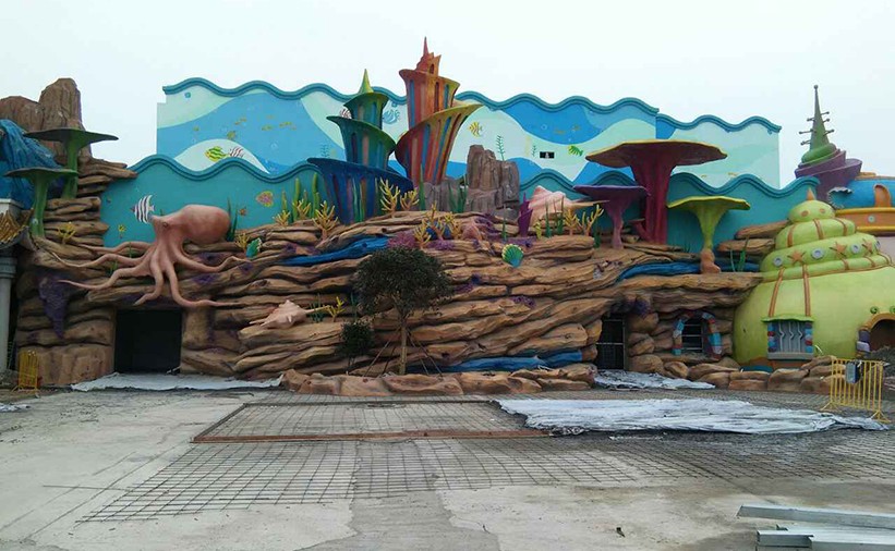 南京棲霞萬達茂酒吧水泥塑石假山山洞合同簽訂準備進場